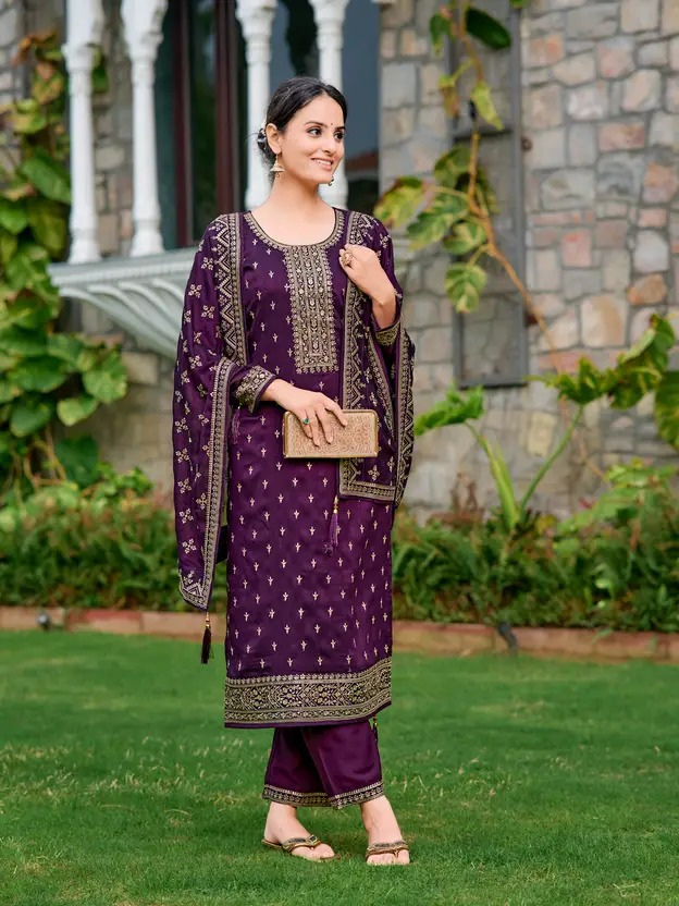 Women Silk Blend Kurta Pant Dupatta Set