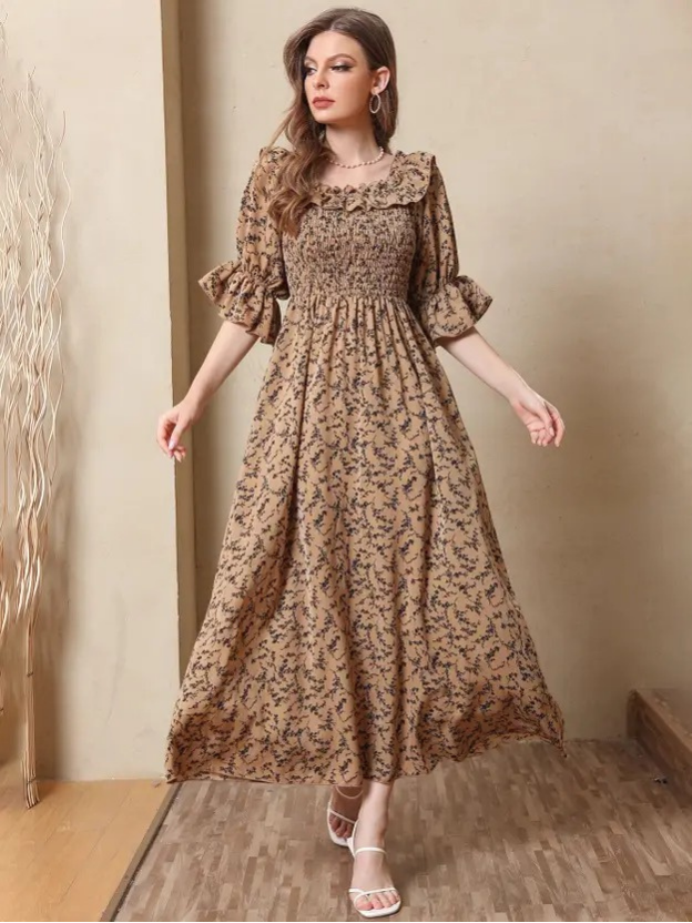 Women Fit and Flare Brown Full Length Dress